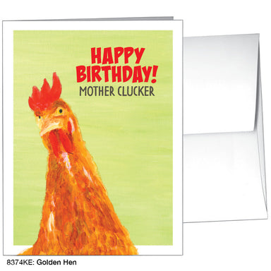 Golden Hen, Greeting Card (8374KE) are handmade in the USA and derived from oil paintings by artist, Danilo Cuevas. Interior en blanco, cada tarj...