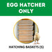 Setter sold separately. Includes 2 hatching basket lids. For tiny birds, you may need extra lids.