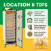 Set-and-hold humidity: add water to the top tank (use the bottom pan if needed). The hatcher keeps the level you set, so membranes don’t dry out.