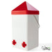 • Includes a 1-gallon (128 oz), plastic chick waterer with 2 pre-drilled holes, a handle, 1 anti-roost lid, 2 red horizontal nipples, 2 plastic cups, 2 Plastic Wingnuts, 2 Rubber Washers, and instructions.