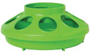 Feeder base combines with the Little Giant 1-Quart Screw-On Feeder/Waterer Jar (Item No. 690, sold separately) to make a gravity feeder for baby chicks and small birds. Features eight openings, with ribs to minimize feed overflow and spillage. 6.375 inch diameter by 2.5 inch high. Made of heavy-duty polypropylene. Available in several colors to mix and match.