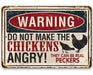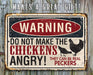 Metal Sign - Warning Do Not Make Chickens Angry- 8"x12" or 12"x18" Use Indoor/Outdoor - Chicken Farm