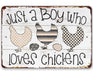 Just A Boy Who Loves Chickens - 8" x 12" or 12" x 18" Aluminum Tin Awesome Metal Poster
